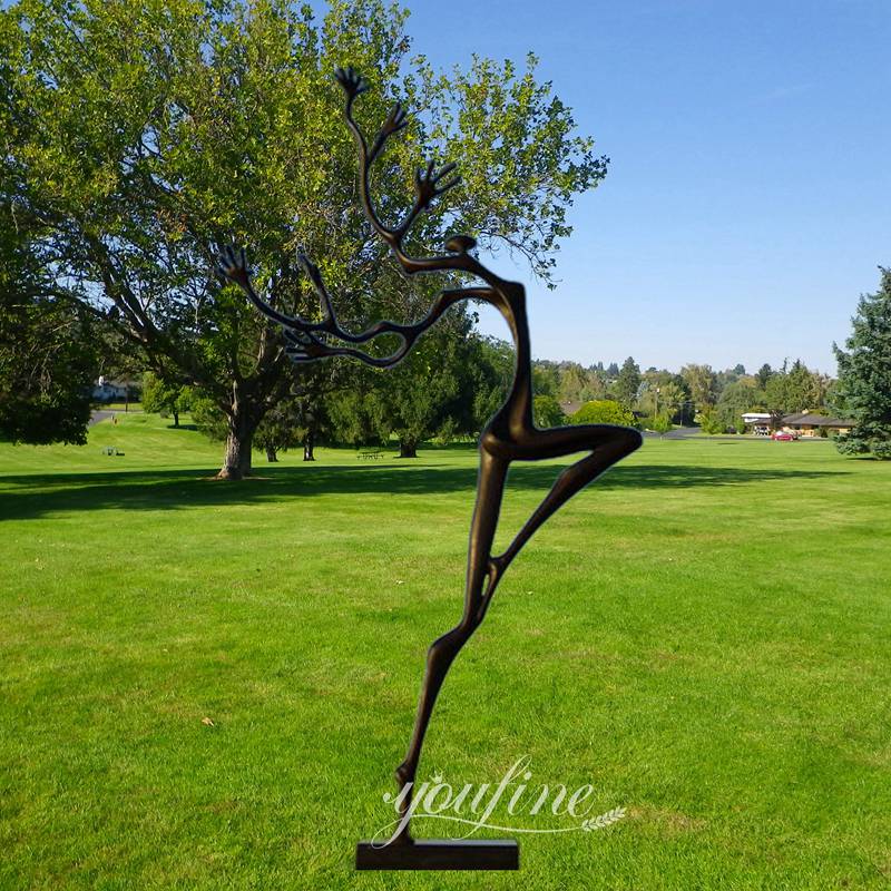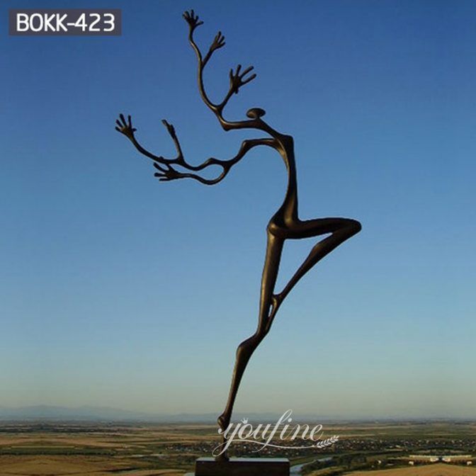 This abstract dancer sculpture is hand-cast from high-quality bronze. The dancer’s body turns into abstract branches. It is exquisite and agile, suitable for your outdoor decoration.