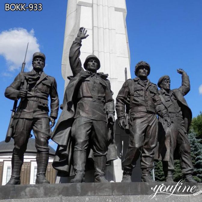 The army soldier statues show us the alliance of soldiers from the Soviet Union, France, the United States, and the United Kingdom. Located behind the Central Museum of the Great Patriotic War in Moscow, this monument commemorates the different countries and soldiers who fought against Nazi Germany, known here as the “Anti-Hitler Coalition”. Years of experience in making bronze statues allowed YouFine to perfectly replicate this statue.