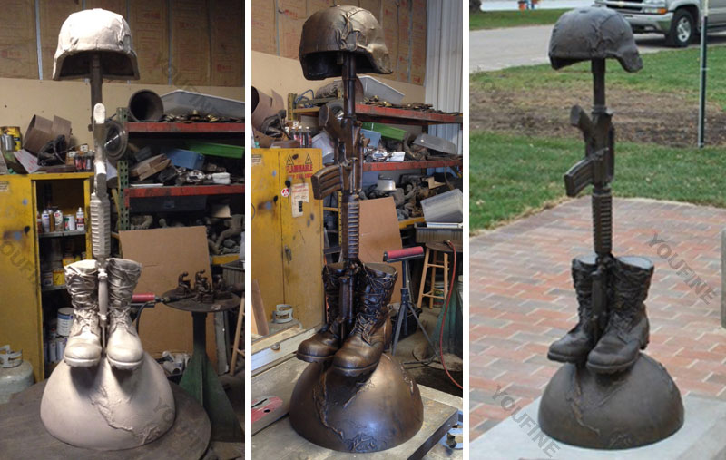 The details of Bronze casting fallen soldier cross monuments statues for sale