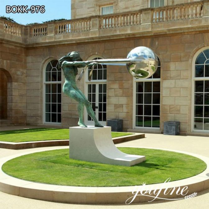 This set Bronze Gravity-Defying famous sculpture of Mother Nature Rotating Earth is popular around the world. No matter in European, American or other countries, it fell in love by many people. Some people would put it in their own garden, some people would put it in their gallery, some people would put it in the square. You could put it in different places according to your need.
