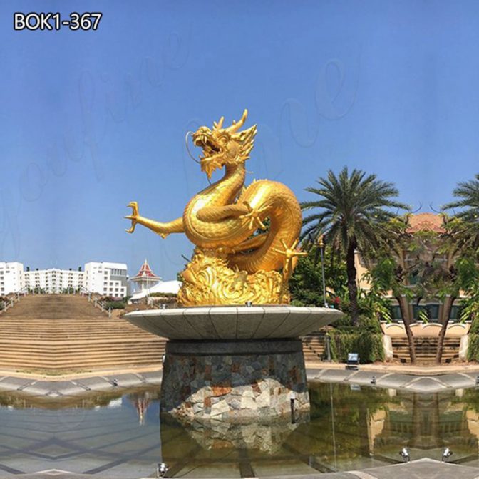 Secondly, you could choose different customization services based on the original bronze dragon statue. For example, the golden bronze dragon statue is designed to spray water from its mouth so that it could act as a fountain.