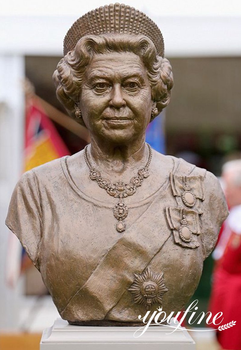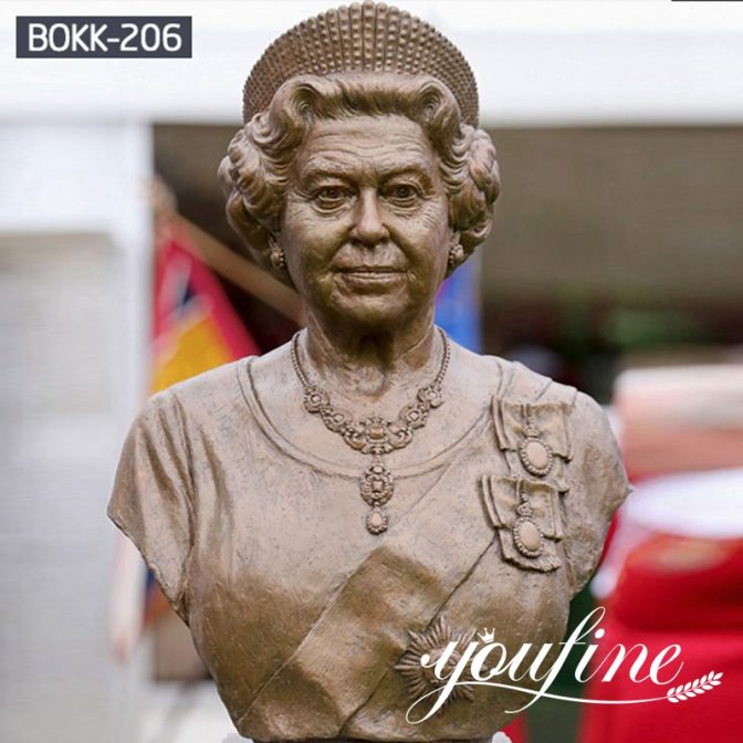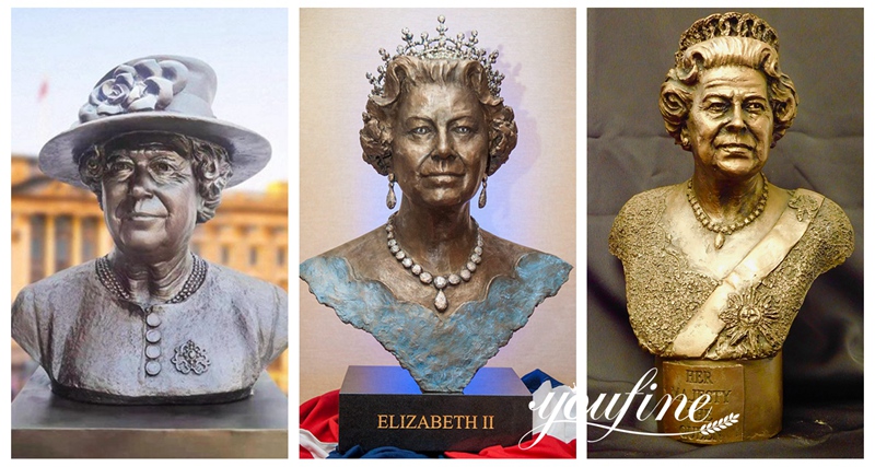 YouFine has professional designers who could help you design a bronze Queen Elizabeth II bust to meet your individual needs. You could change the queen’s bust into different clothes, accessories, or colors, such as gold, blue, different sizes, colors, and decorations to better match the scene you place.