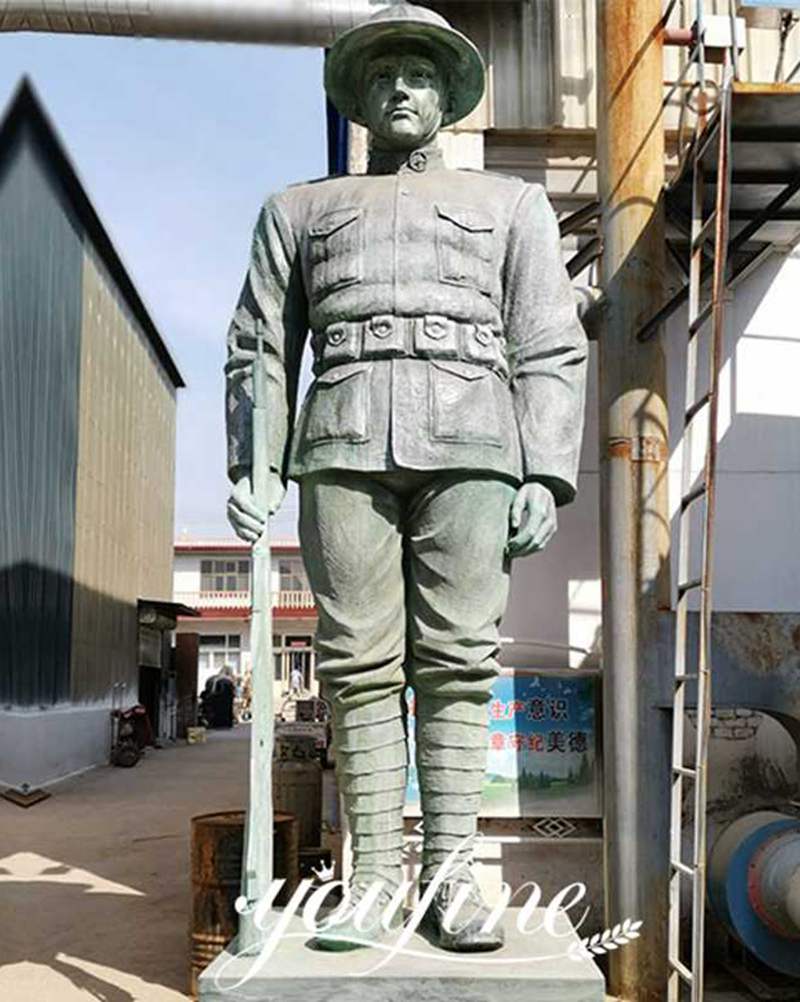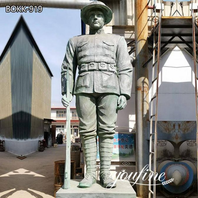 This bronze soldier statue could withstand cold weather. Then please note that the look of our soldier sculpture is very realistic. You could clearly see the serious eyes of this soldier sculpture. In addition, the clothing of the YouFine bronze soldier statue is very formal. So, that’s what makes YouFine artists unique.