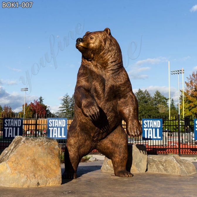 Envision a bear, standing tall, embodying every nuance of its wild essence. From the meticulous detailing of its fur to the intense gaze in its eyes, our bronze bear is more than a mere representation—it’s a captivating symbol of nature’s grandeur. Therefore, many campuses, public parks, corporate spaces, and squares like to use bear statues as mascots or memorials in the area. And a high-quality bronze statue would be a work of art that could be preserved forever.