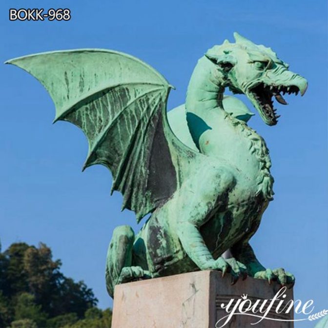 This is one of the popular large dragon statues for sale at the YouFine factory. YouFine uses chemical patina to make its surface color extremely natural and beautiful. We could see a pair of bat-like wings growing on the back of this western dragon, and its mouth is open, revealing sharp teeth. A pair of sharp big eyes make people dare not look at him. We all know that Western dragons often have evil meanings, and when they are angry, they would continuously shoot fireballs from their mouths to attack. Although its representative meaning is not so positive, the culture, statues, film, and television related to the dragon are still deeply loved by people.