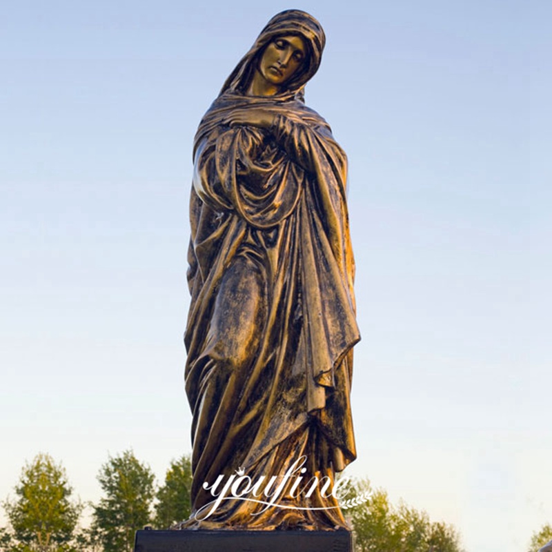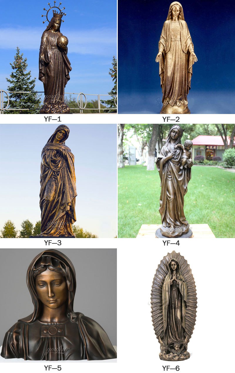 The style and size of this bronze Mary statue could be customized. You could choose the style of the bronze Mary statue according to your preferences and needs. You could also add some decorations to the bronze Mary statue, such as sacred hearts, cross pendants, garlands, etc. YouFine has professional designers available to help you.