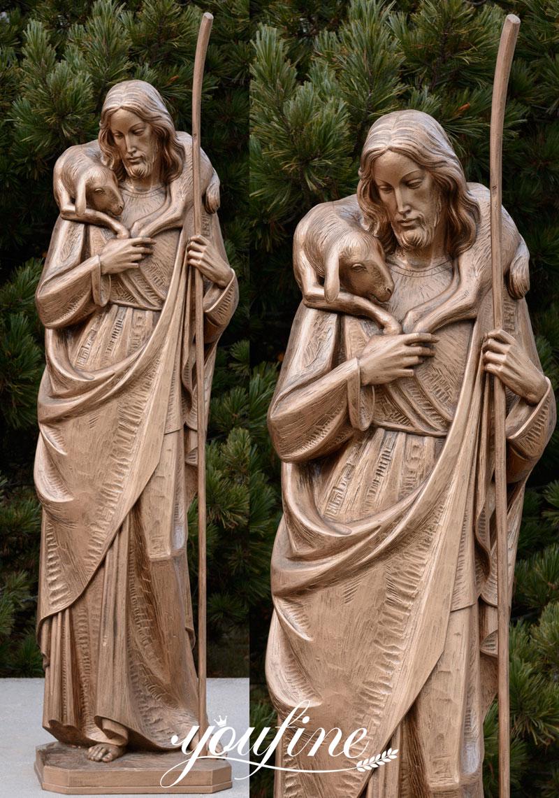 In addition to the bronze Shepherd Jesus statue, we also have many other styles, sizes, and colors of bronze Jesus statues, bronze Mary statue, bronze Holy Family statues, and other bronze religious statues.