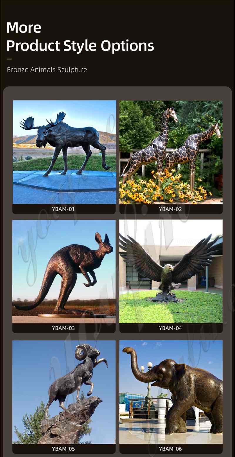 In addition to making bronze owl sculptures, the YouFine factory has also made many other types of bronze animal sculptures. For example, bronze lion sculpture, bronze giraffe sculpture, bronze tiger sculpture, bronze kangaroo sculpture, bronze elephant sculpture, bronze eagle sculpture, etc. In addition, we also accept various customized services. Any animal sculpture you want, we could make it perfect for you.